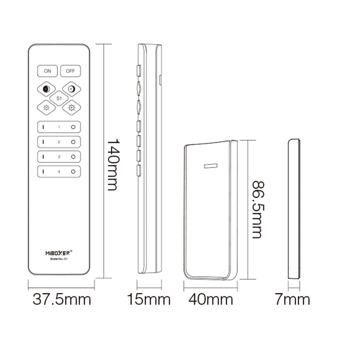 Trasmettitore portatile DYNAMIC CCT per 4 zone, azionabile con pulsanti, possibilità di memorizzare una scena, tensione di funzionamento 3V (2x AAA), portata circa 30m, incluso supporto magnetico, dimensioni: 140 x 37,5 x 15mm