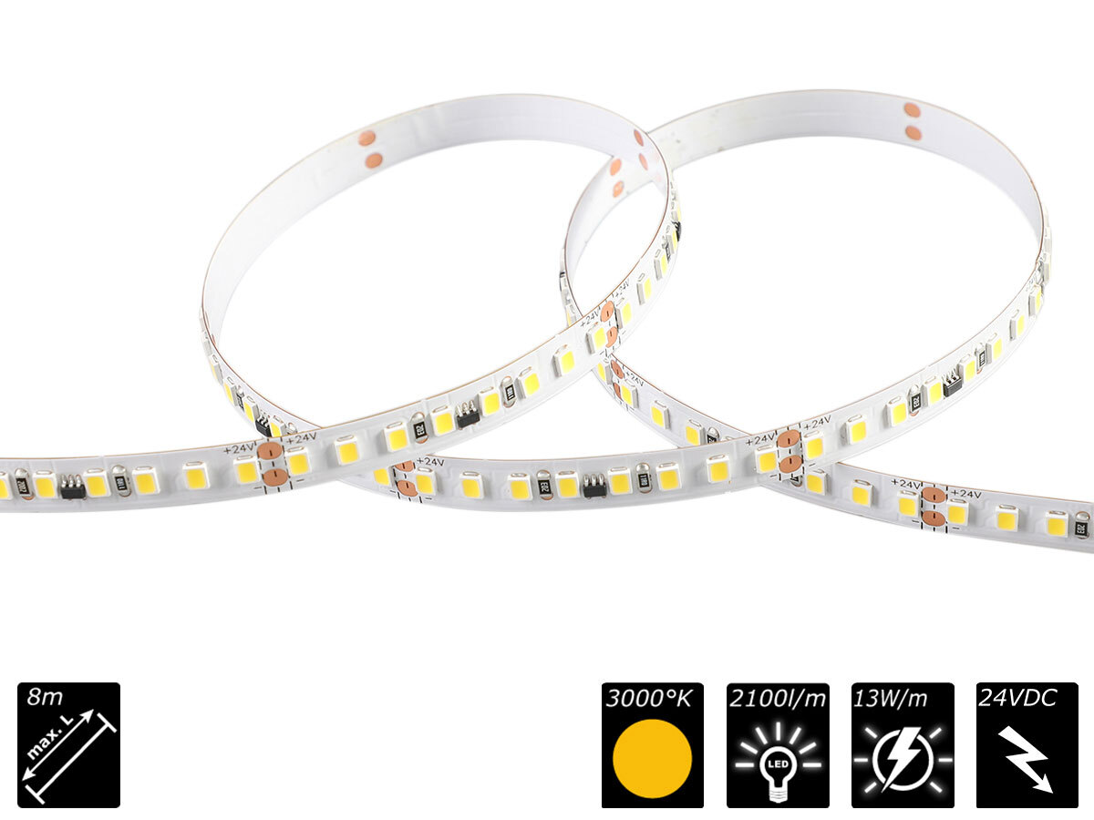 Warm weiss 3000°K, teilbar alle 50mm (8 Chips), 24 VDC, 13 Watt/m, Lichtstrom 2100 Lumen/m, CRI90