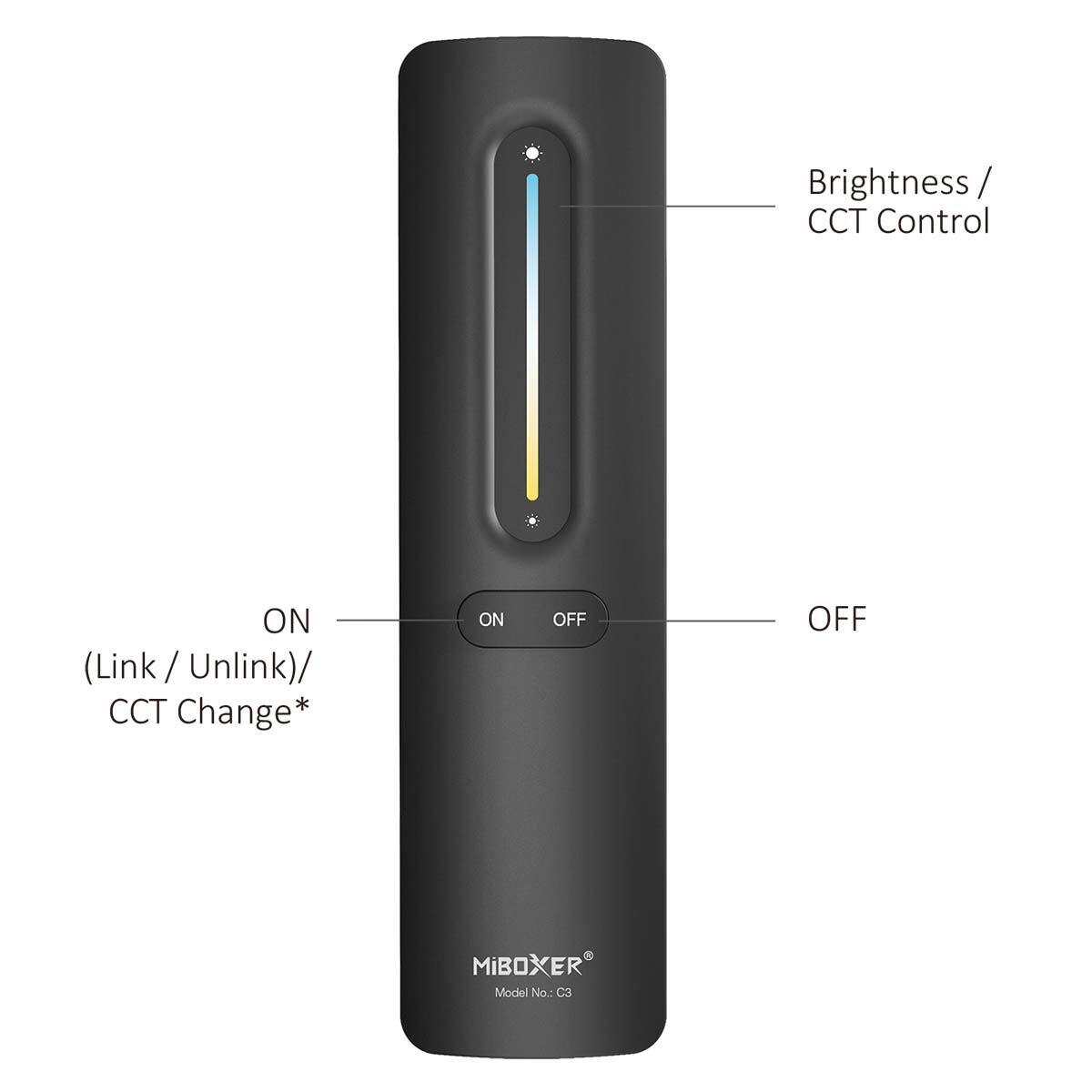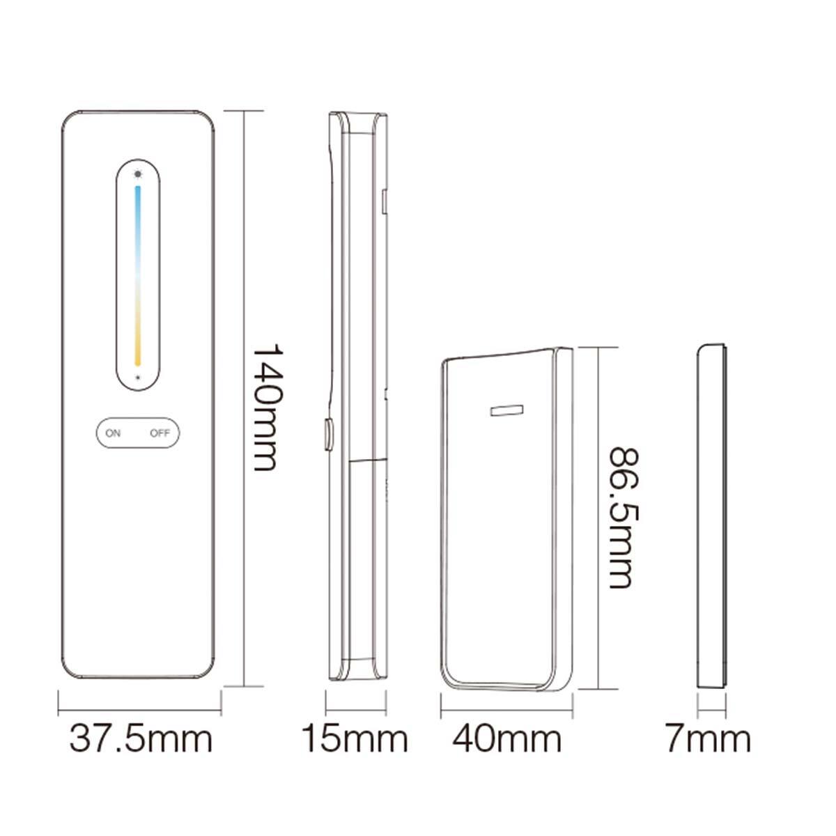 DYNAMIC CCT hand-held transmitter for 4 zones, with on/off buttons, slider for dimming and color adjustment, one scene can be saved, operating voltage 3V (2x AAA), range approx. 30m, incl. magnetic holder, dimensions: 140 x 37.5 x 15mm