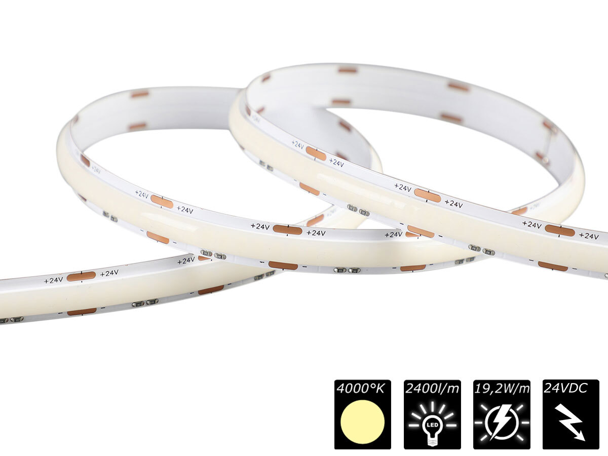 Neutral weiss 4000°K, teilbar alle 27.7mm, 24 VDC, 19.2 Watt/m, Lichtstrom 2450 Lumen/m, CRI90