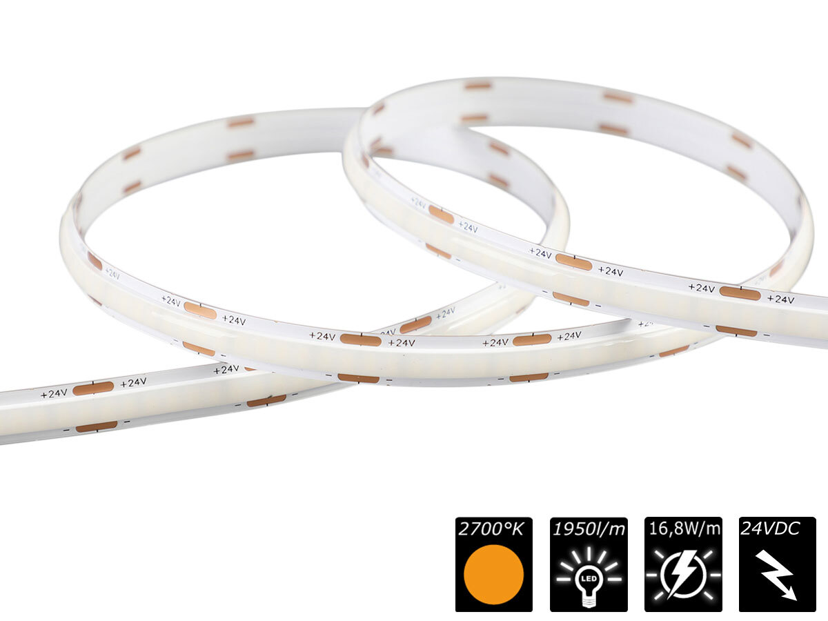 Super Warm weiss 2700°K, teilbar alle 25mm, 24 VDC, 16.8 Watt/m, Lichtstrom 1950 Lumen/m, CRI90, b 8mm
