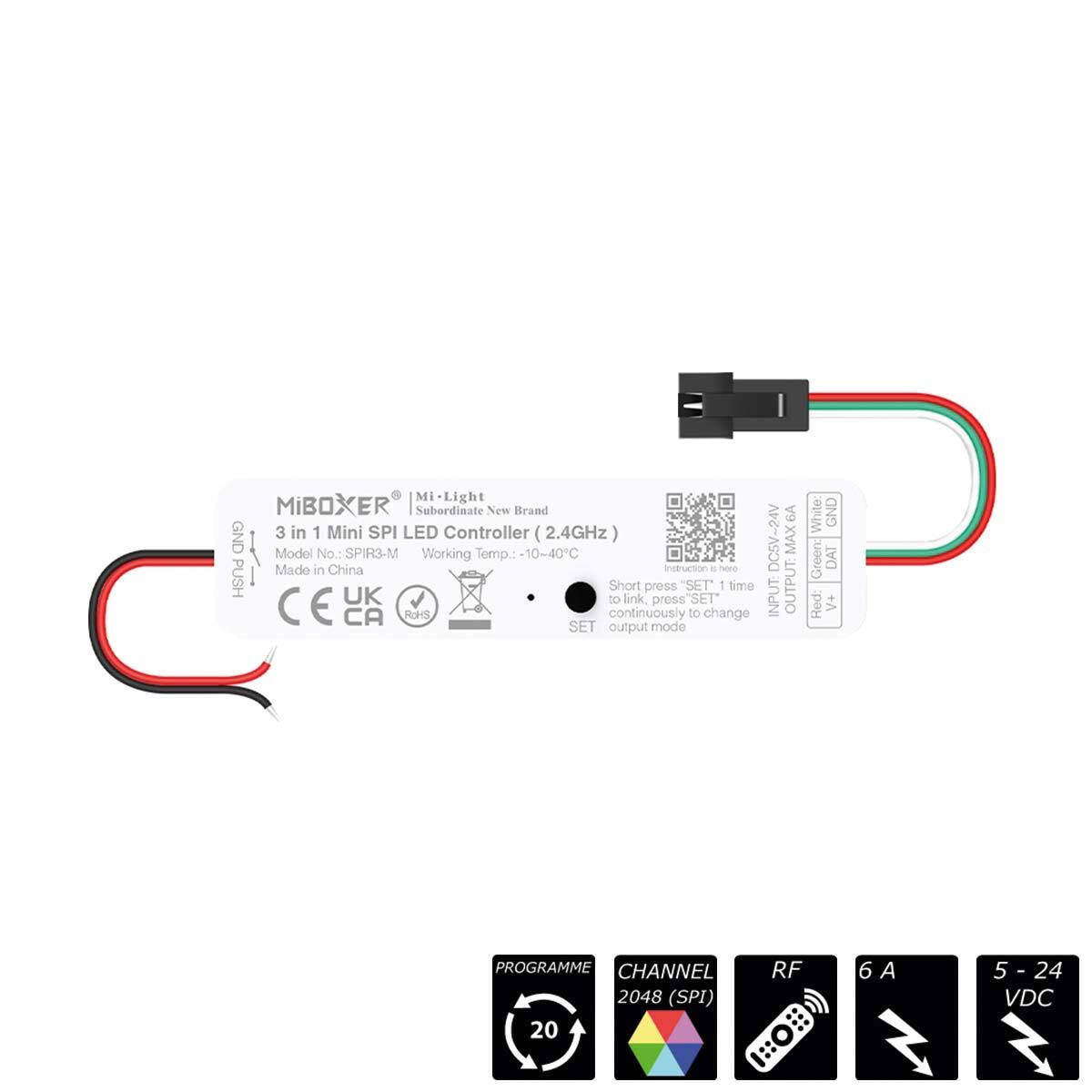 RF-2.4GHz SPI CONTROLLER 3-IN-1, SINGLE / RGB / RGBW, 2048 Pixel, MINI